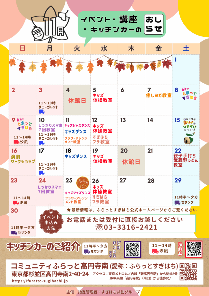 11月カレンダー[イベント・講座・キッチンカー情報]