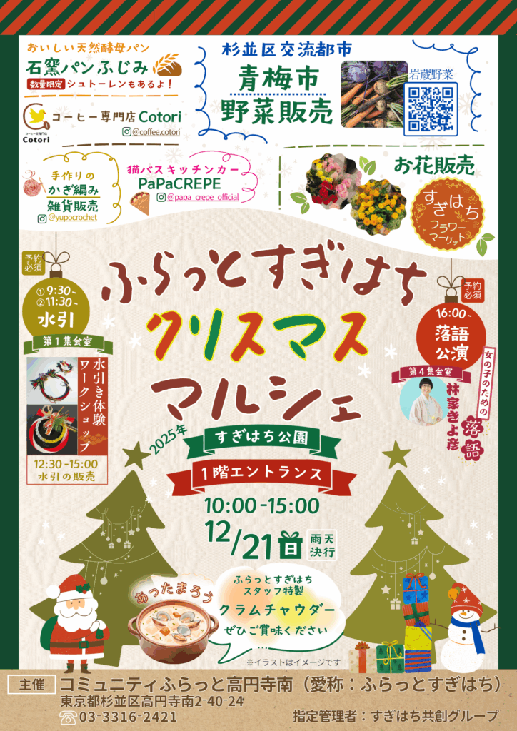 有料 「ふらっとすぎはちクリスマスマルシェ」開催! チラシのPDFはこちら -