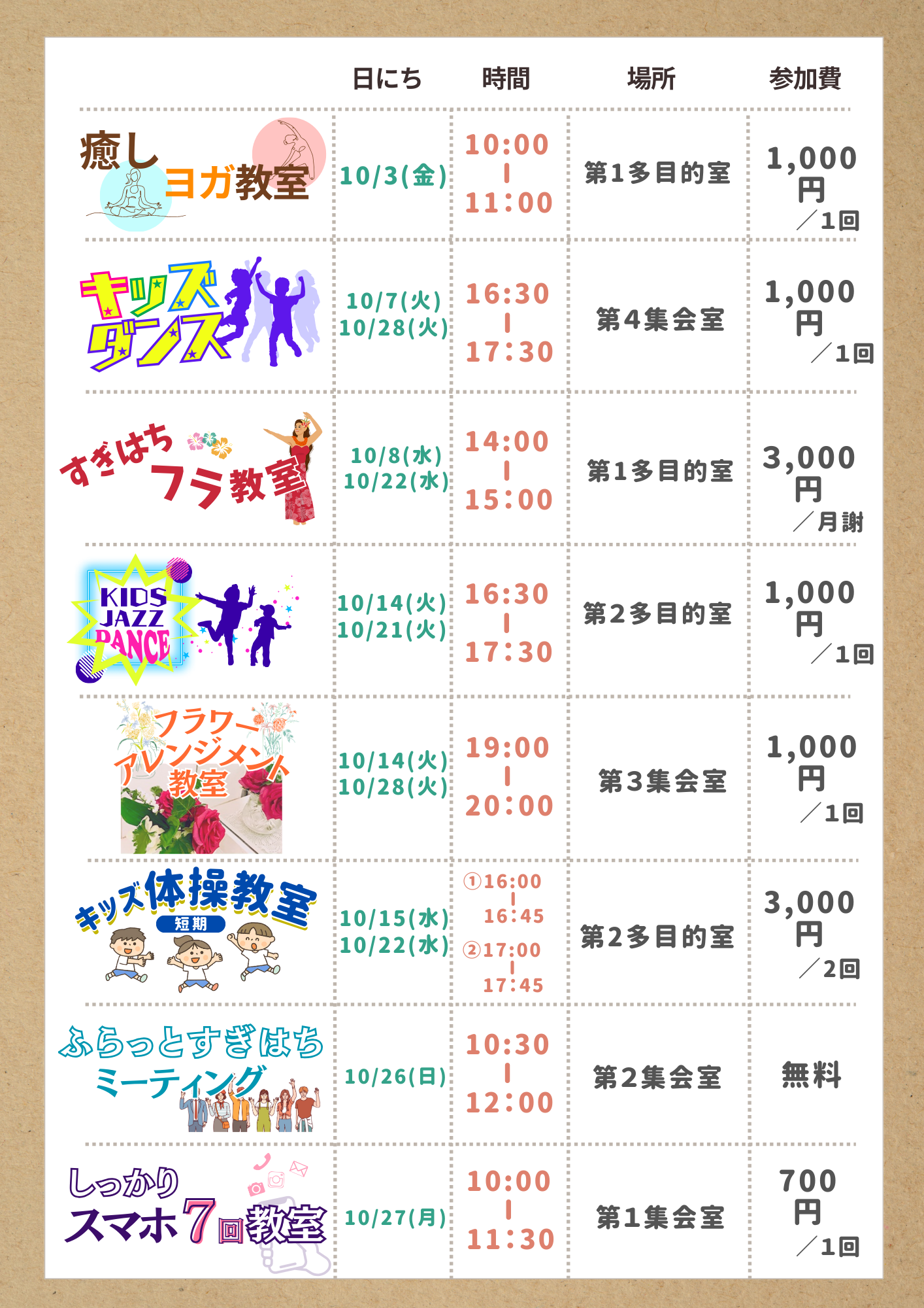 10月カレンダー[イベント・講座・キッチンカー情報] 2025 9/26 news 2025年9月26日 10月カレンダー[イベント・講座・キッチンカー情報] \ クリックで拡大 / チラシのPDFはこちら お知らせ一覧へ news