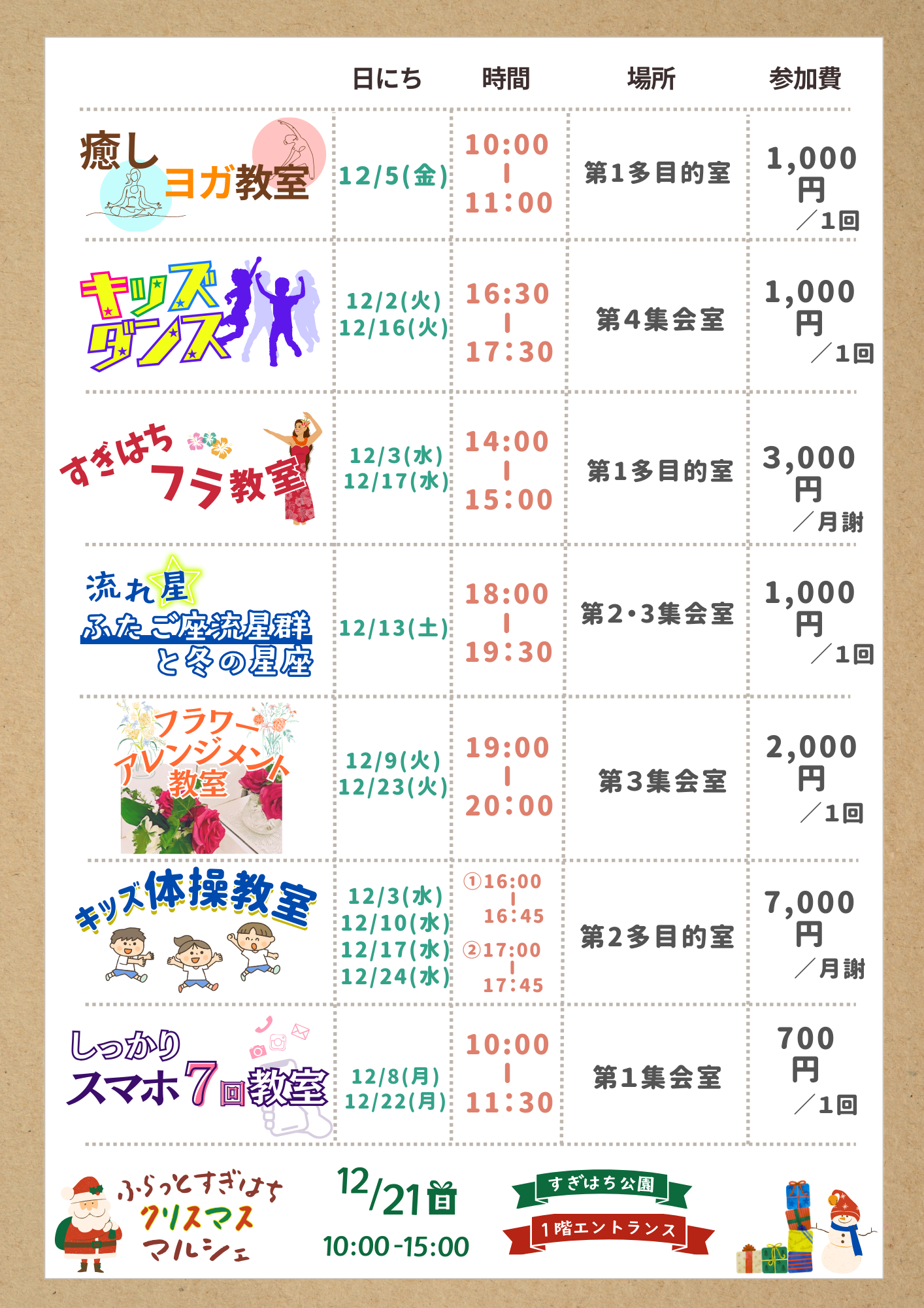 12月カレンダー[イベント・講座・キッチンカー情報] 2025 11/27 news 2025年12月1日 12月カレンダー[イベント・講座・キッチンカー情報] \ クリックで拡大 / チラシのPDFはこちら お知らせ一覧へ news